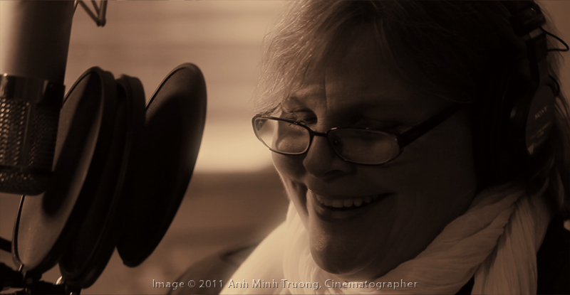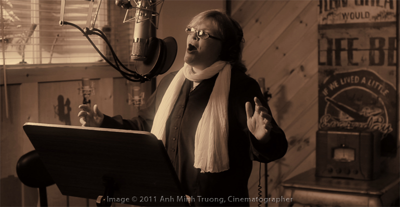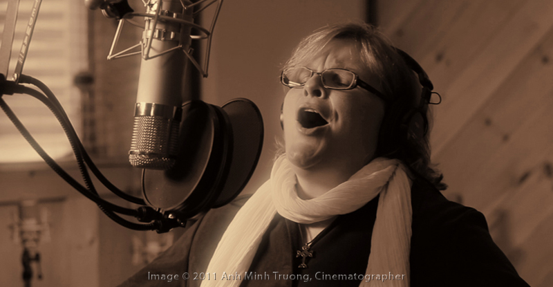 Kate Morrison au studio AudioBec pour l’enregistrement de sa chanson «Les mots des maux»