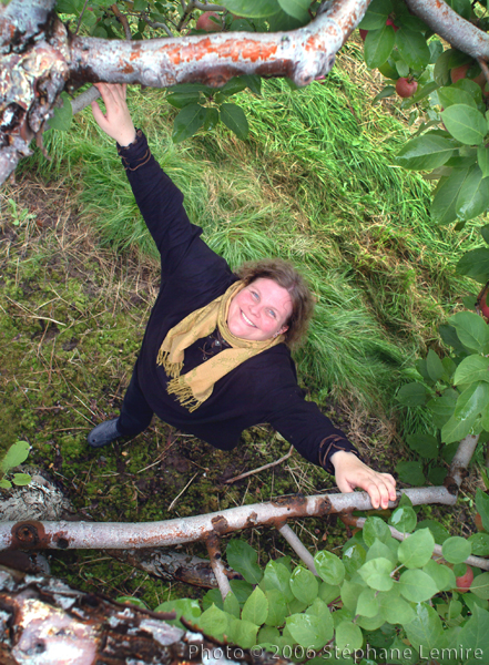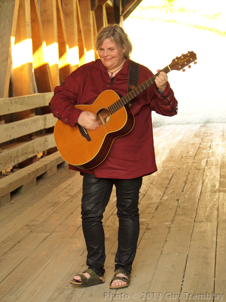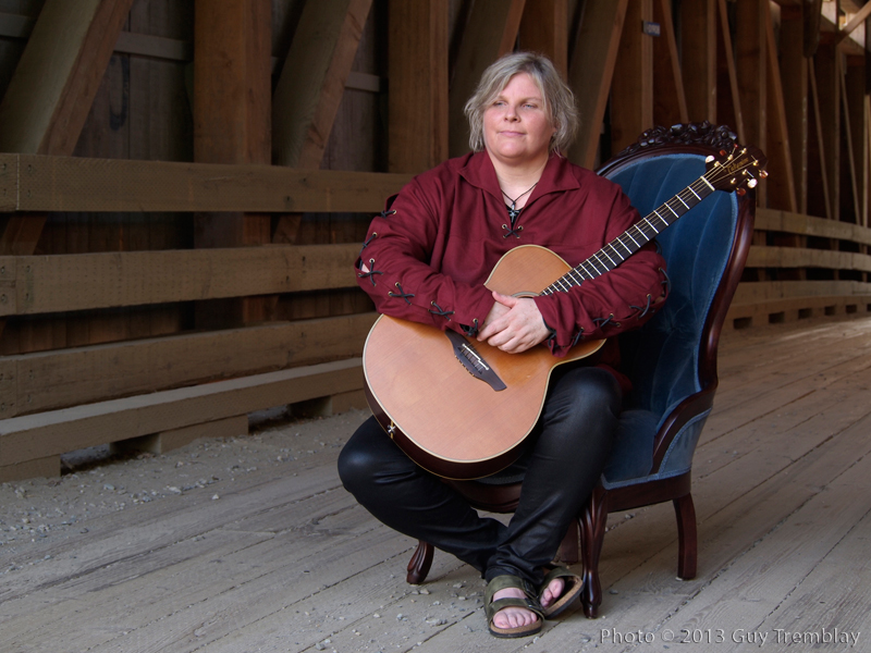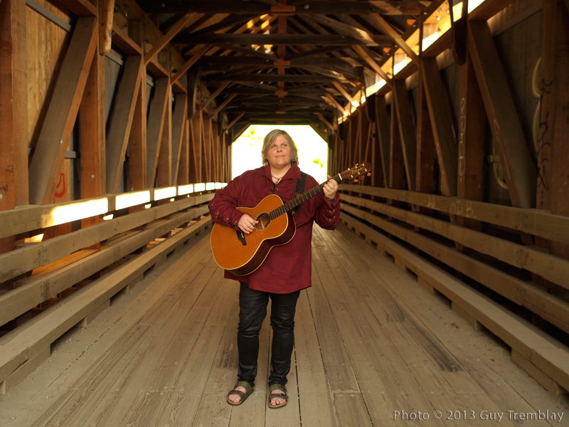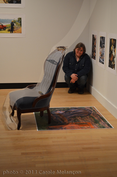 Kate Morrison et la chaise bleue sous le Pont Couvert